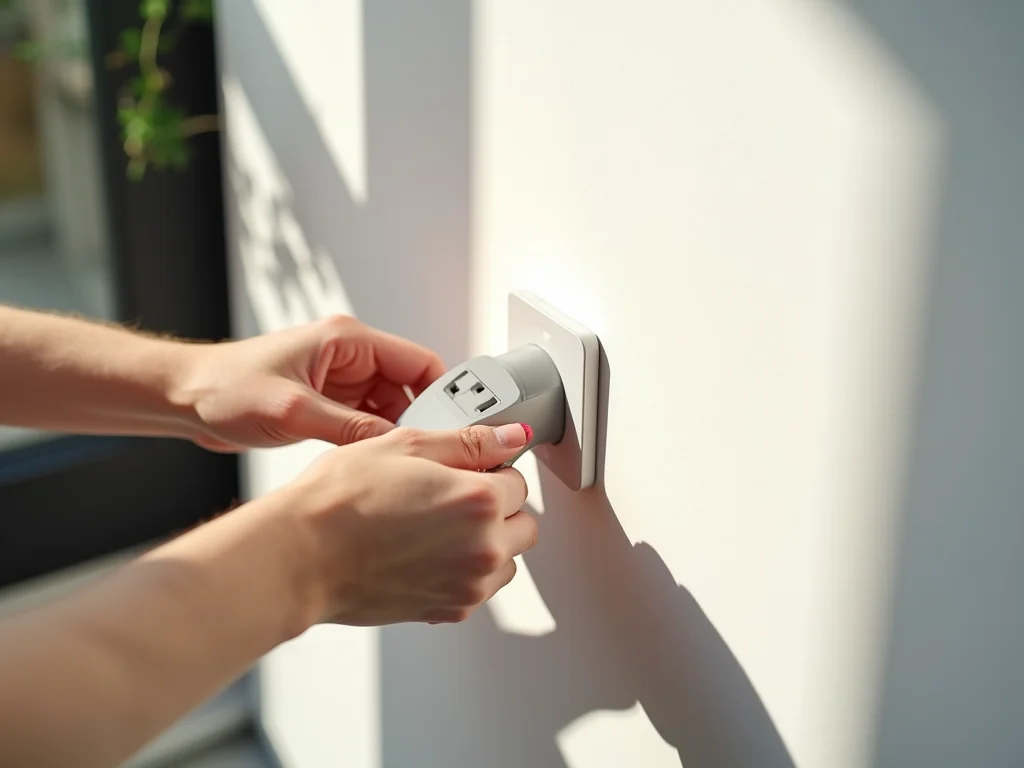Pronto para ligar essa nova tomada inteligente na parede? O primeiro passo é garantir que a energia esteja desligada no disjuntor. Isso é fundamental para sua segurança. Depois, tire a placa antiga da tomada. Geralmente, são dois parafusos simples. Com a placa fora, você vai ver os fios. É hora de conectar os fios da nova tomada aos terminais corretos. Geralmente, o fio fase vai no terminal “L”, o neutro no “N” e o terra no símbolo de terra.