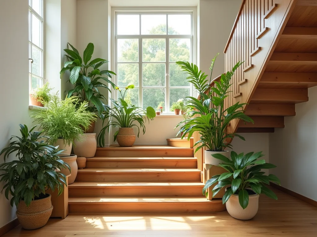 Dica Prática: Ao escolher as plantas, opte por espécies que não cresçam demais e que se adaptem bem a ambientes com menos luz, caso sua escada não pegue sol direto. Isso garante que elas fiquem sempre bonitas e fáceis de cuidar.