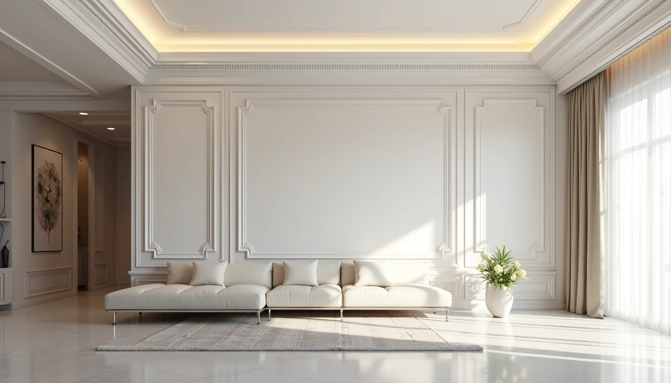 A escolha da moldura de poliestireno certa pode fazer toda a diferença na estética do seu espaço. Para ambientes clássicos, perfis mais elaborados e com detalhes em relevo adicionam um toque de elegância atemporal. Já para espaços modernos e minimalistas, molduras retas e discretas são a pedida certa, criando uma linha limpa entre parede e teto.