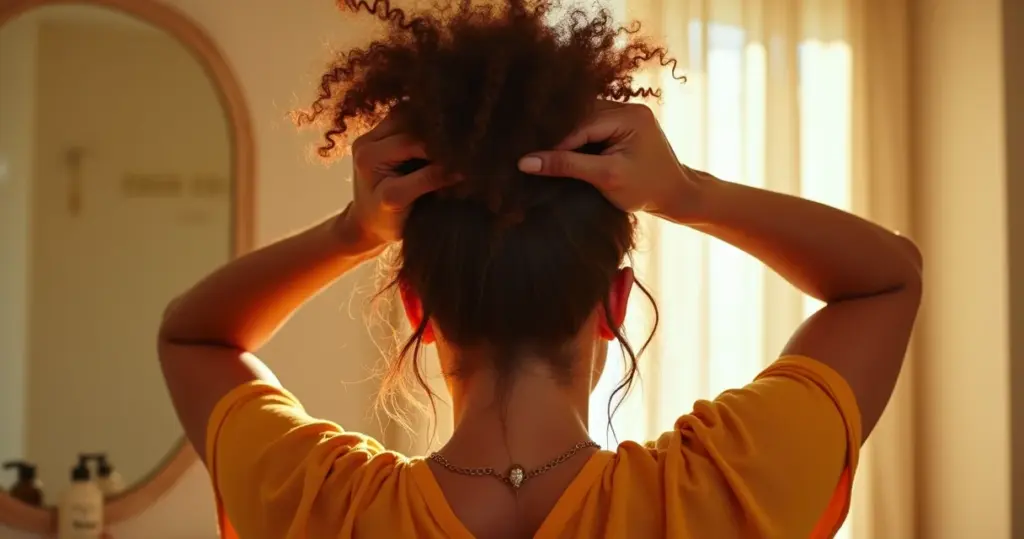- Passo 2: Escolha o Penteado – Pense no seu dia. Precisa de algo prático para o trabalho? Ou um look mais arrumadinho para sair? O coque abacaxi é um clássico para cacheadas, preservando os cachos e valorizando o volume.