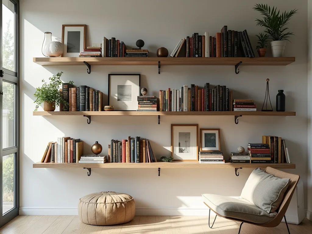 Uma **prateleira para livros de parede** bem posicionada pode transformar um canto esquecido em um refúgio pessoal. Você pode até brincar com arranjos de livros, alternando a posição deles e adicionando pequenos objetos que te inspiram. Fica um charme!